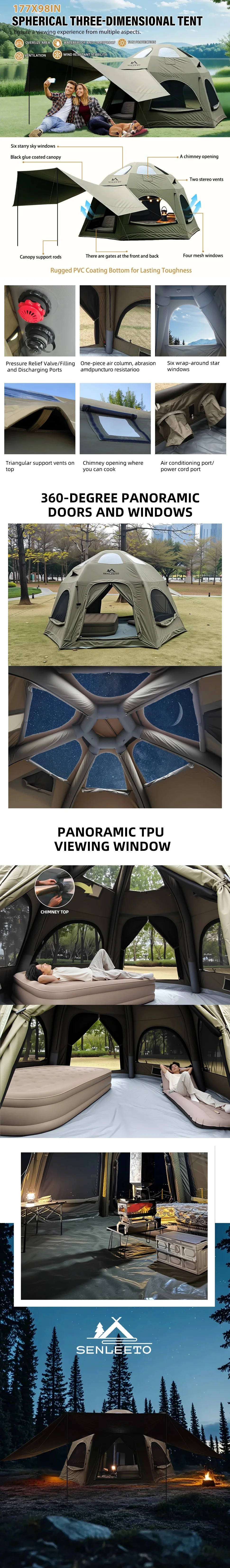 • 🌐【Dome Air Tent Design】360° All-Round Support with Rock-Solid Stability. The unique six-arch airbeam design acts as the tent's "ribs," providing uniform and powerful support for the oval sphere. Combined with 15cm thick air tubes, it remains upright and secure even in strong winds, far surpassing ordinary tents. Fear no weather, safely sheltered.