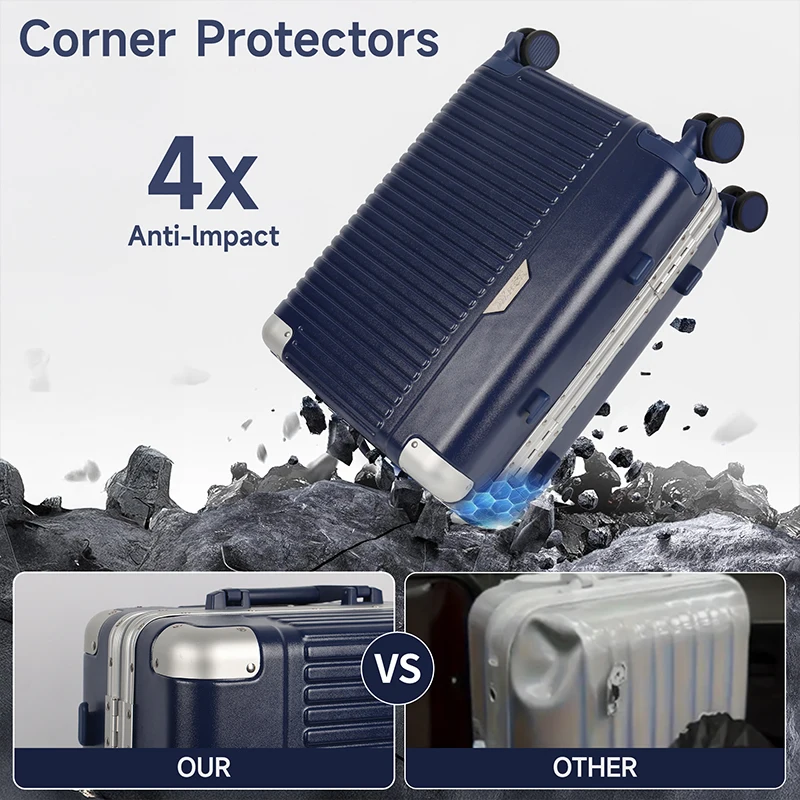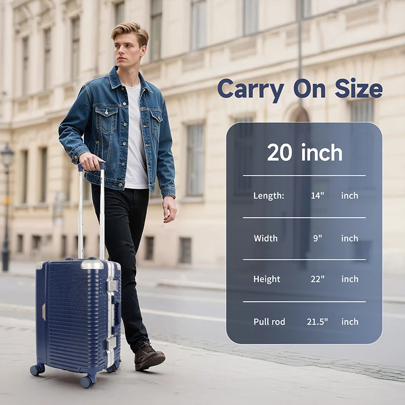 20” Travel Suitcase Men Women Carry-On Luggage Aluminum Frame Trolley Case with Wheels &TSA Lock Hardside 4X Anti-Impact