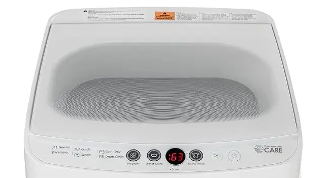 This Commercial Care portable clothes washing machine has a 0.9 cu. ft. capacity, which facilitates 3.5 lbs. of laundry per load.