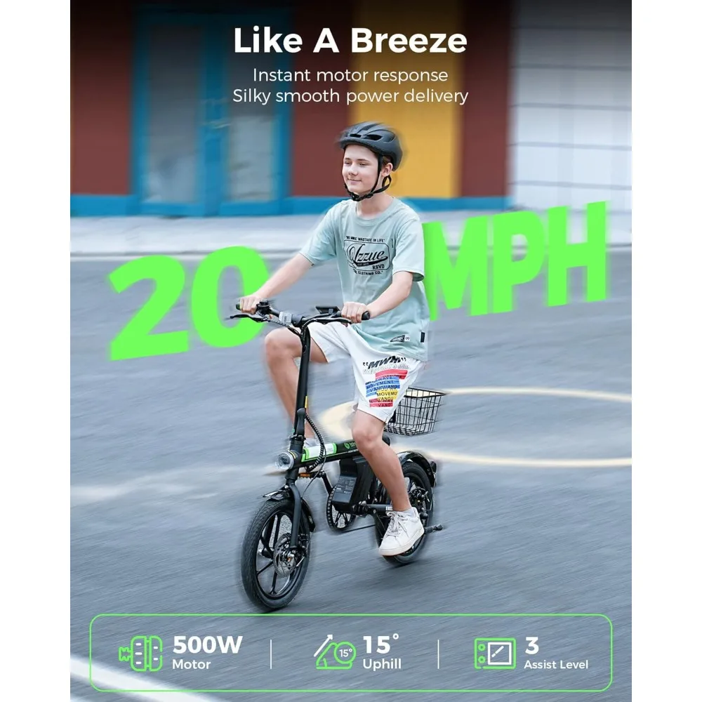 - 【Smart Uphill】- A 16 inch ebikes for adults doesn't have to be this nimble, but it is. Powered by a 500W motor with intelligent algorithms, it automatically detects inclines and adjusts assistance to match. Tackle 15° hills with ease and cruise at speeds up to 20mph